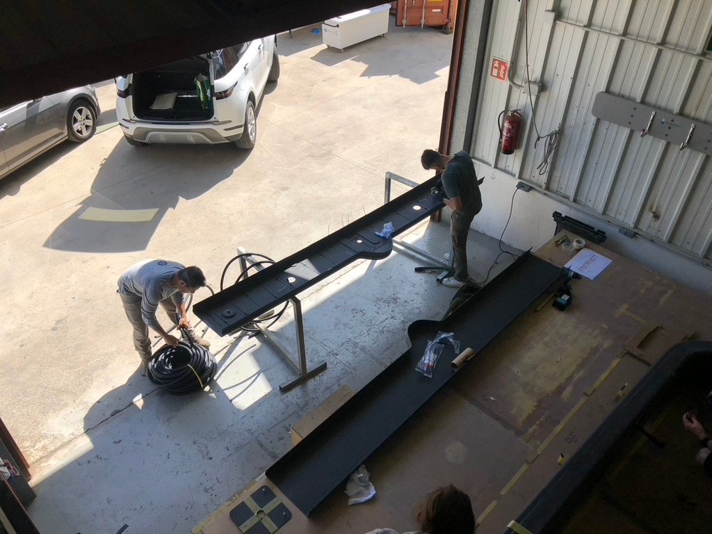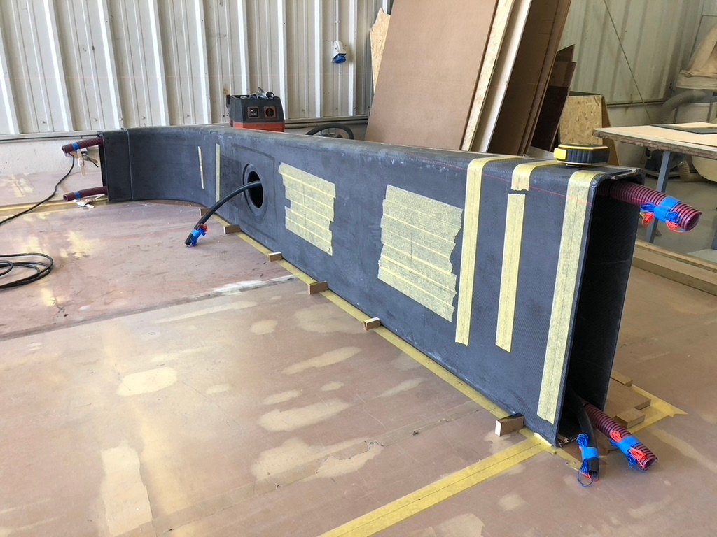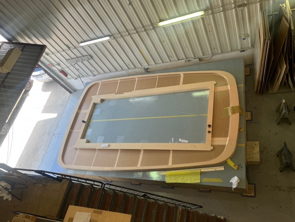On another front, our collaboration with Judel Vrolik led to the design and integration of a carbon radar arch and bimini for the Sasga vessel. Our in-house CNC machines were instrumental in creating modular tooling and assembly jigs essential for manufacturing. The bimini, constructed from E-glass foam resin-infused sandwich materials, featured a soft retractable sunroof designed by Bezenzoni, enhancing the yacht's luxury feel.